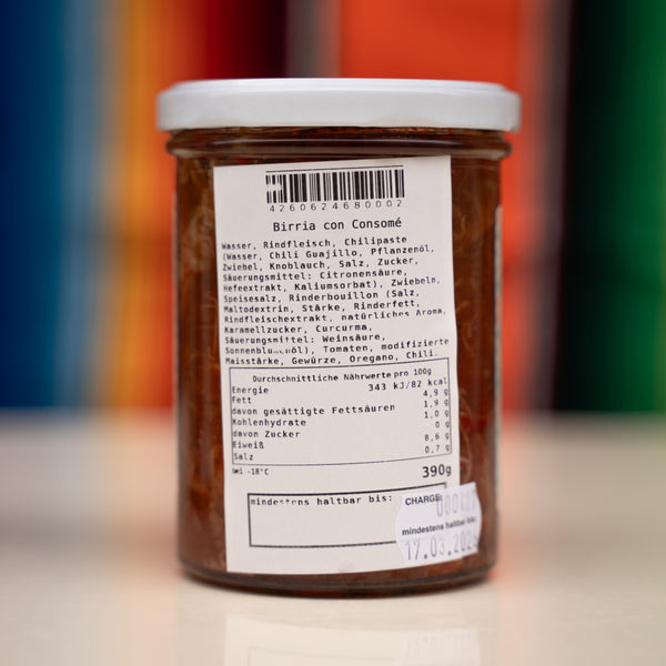 Cordero deshuesado, agua, pasta de guindilla (agua, guindilla, aceite vegetal, cebolla, ajo, sal, azúcar, ácido cítrico, extracto de levadura, sorbato de potasio), zanahoria, garbanzos, cebolla, yodo. Sal de mesa, vinagre de sidra de manzana (vinagre de sidra de manzana, metabisulfito de potasio), ajo, tomillo